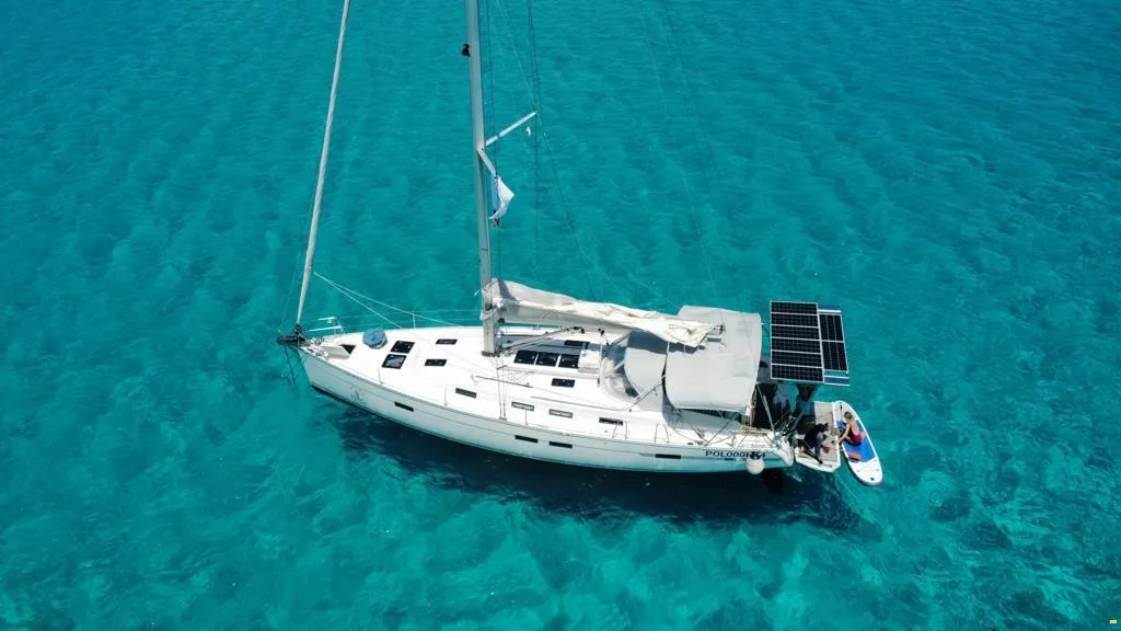 L’imbarcazione è una Bavaria Cruiser 45, costruita nel 2011, lunga 14,30 metri. Una barca moderna, solida e confortevole, pensata per vivere il mare senza rinunciare allo spazio.